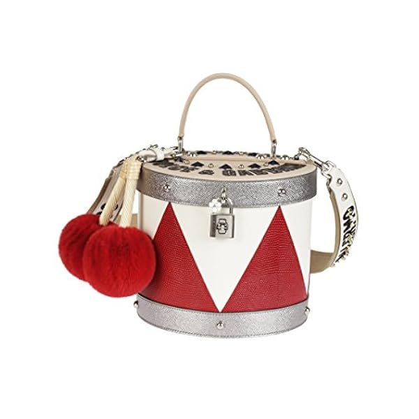 - BOLSO DE MANO DOLCE E GABBANA, CUERO 100%, color BLANCO/ROJO, 21x17x6cm, Asa 6cm, Bandolera 45cm, TAMBURO, SS17, código de producto BB6334AG7218V434