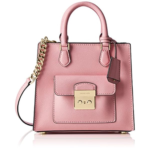 Defined by its clean lines and boxy silhouette, the Bridgette Tote Bag from Michael Kors is perfect for transitioning between daytime and evening looks. Crafted from rich saffiano leather with a crosshatch texture, it features a flap patch pocket to the front that secures via push lock closure. The inside in fully lined with a branded fabric and includes an internal zip pocket and pouch pockets for keeping everyday essentials organised. There is also the option of carrying this bag by the grab handles or over the shoulder by the chain detailed crossbody strap. Complete with gold tone hardware throughout and studs to the bottom which allow the bag to stand by itself. A definite must have for your accessory collection. 100% Saffiano leatherCrosshatch textureGold tone hardwareZip fastening Grab handlesAdjustable and detachable crossbody strapFlap patch pocket with push lock closure on front Removable key charm at front Gold chain detail Branded liningInternal zip pocketInternal pouch pockets Studs at bottom of bagMichael Kors branding Dustbag includedMeasurements 11.5" x 9.5" x 4.5"Quiero este bolso