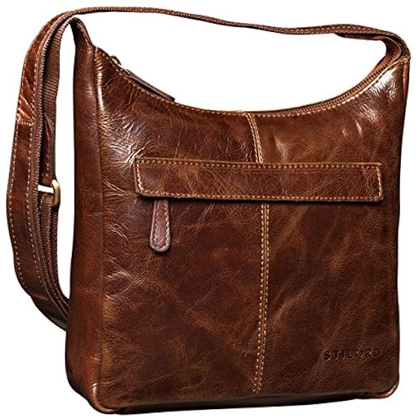 Ofertas para comprar online Bolso bandolera Stilord (Vintage piel pequeño de cuero, mujeres, 29, 5 x 25 x 7, auténtico de búfalo, marrón)